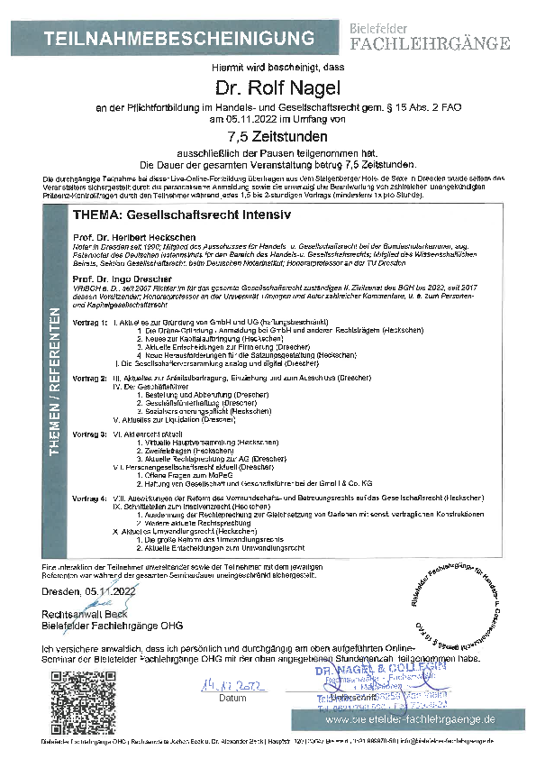 Folgende Fortbildungen wurden im Jahre 2022 besucht